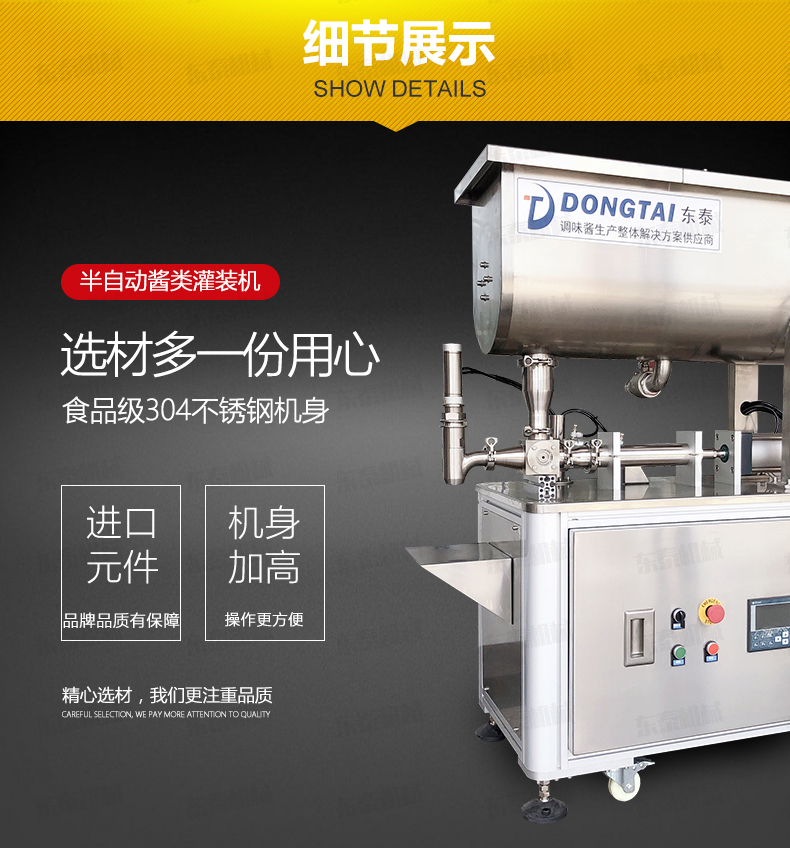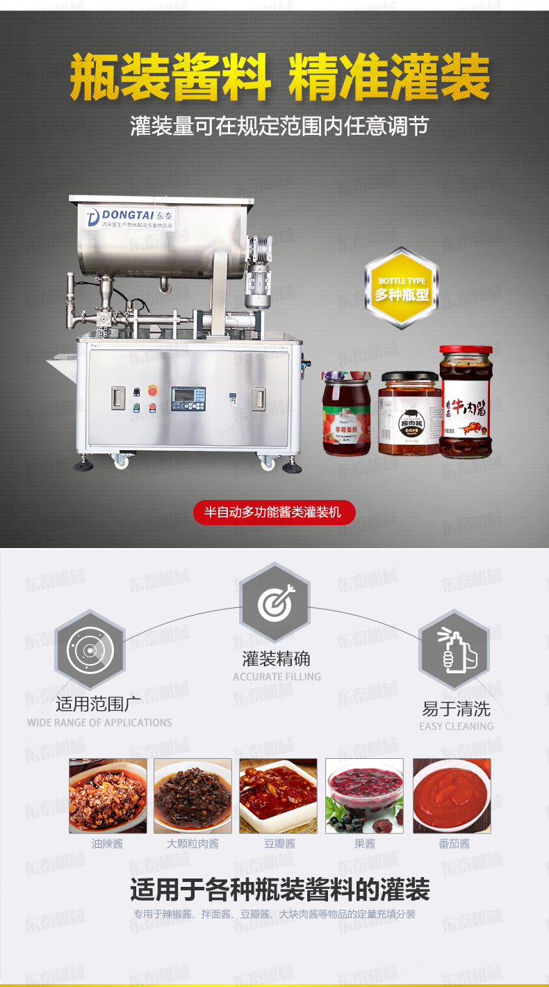 雙頭辣椒醬定量灌裝機產(chǎn)品介紹: 雙頭辣椒醬定量灌裝機可自動完成計量、灌裝等全過程,操作方便,灌裝精度高,該機為 半自動灌裝機械,配置的自動攪拌器,保證了醬和油的充分混合,可灌裝顆粒漿狀流體物料在對