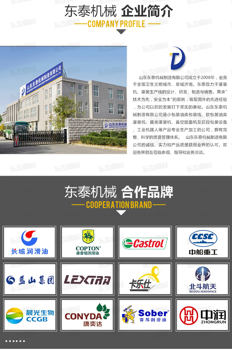 沈陽東泰機械隸屬于山東東泰機械,主營粉劑包裝機、醬類醬料包裝機、食用油灌裝機、食品包裝機、包裝流水線、灌裝生產(chǎn)線等產(chǎn)品,并且為東北地區(qū)客戶提供售后維修服務...
