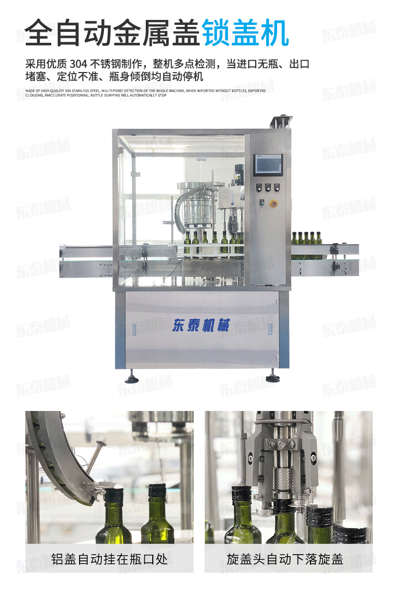 5、整機(jī)多點(diǎn)檢測,當(dāng)進(jìn)口無瓶、出口堵塞、定位不準(zhǔn)、瓶身傾倒均自動停機(jī)。