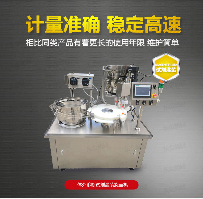 設(shè)備簡介: 本機是在引進和吸收國外技術(shù)的基礎(chǔ)上,由我公司自主研發(fā)的一款I(lǐng)VD診斷試劑灌裝旋蓋一體機,能同時完成自動理瓶、自動上瓶、定量灌裝、自動理蓋、上蓋和旋蓋封口等動作。本機采用日本高