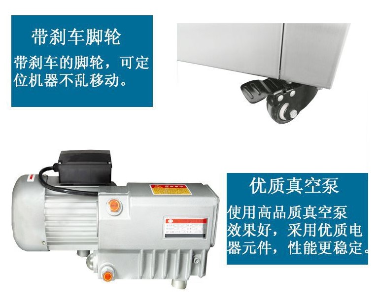 電源 220/50HZ 電機(jī)功率 1KW 熱封功率 0.95KW 抽氣速率 20m³/h 充氣速率 0.85mpa