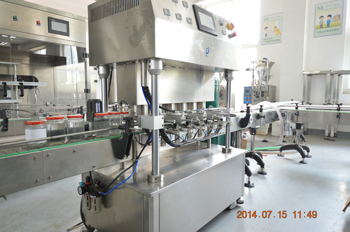 3、該設(shè)備采用下壓式真空旋蓋,代替?zhèn)鹘y(tǒng)的上頂式旋蓋,克服傳統(tǒng)碎瓶,傷瓶蓋情況發(fā)生。