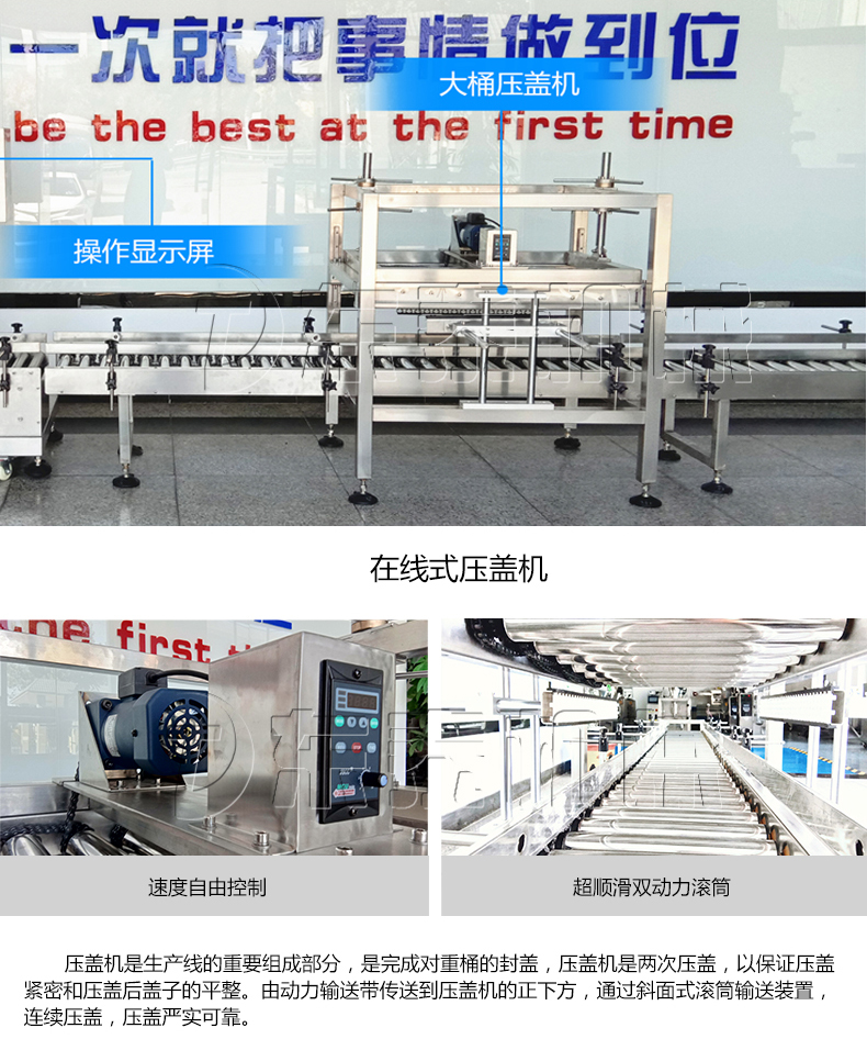 稱重式灌裝封口生產(chǎn)線為半自動(dòng)單頭稱重式灌裝機(jī)搭配在線式壓蓋機(jī),設(shè)備小巧、實(shí)用適合5-30KG敞口桶的灌裝(其它桶型可定制),灌裝時(shí)由人工放置空桶,并啟動(dòng)開(kāi)始按鈕,待灌裝完畢后放蓋并將桶推岀灌裝位置,動(dòng)力滾筒自動(dòng)傳送至壓蓋杋進(jìn)行壓蓋。壓蓋完畢后可輸送至成品輸送機(jī)上完成整個(gè)操作過(guò)程,全程僅需一人即可完成整個(gè)生產(chǎn)過(guò)程。此型號(hào)灌裝機(jī)為客戶大大降低了生產(chǎn)勞動(dòng)成本,是大中小型液體灌裝企業(yè)的理想選擇。