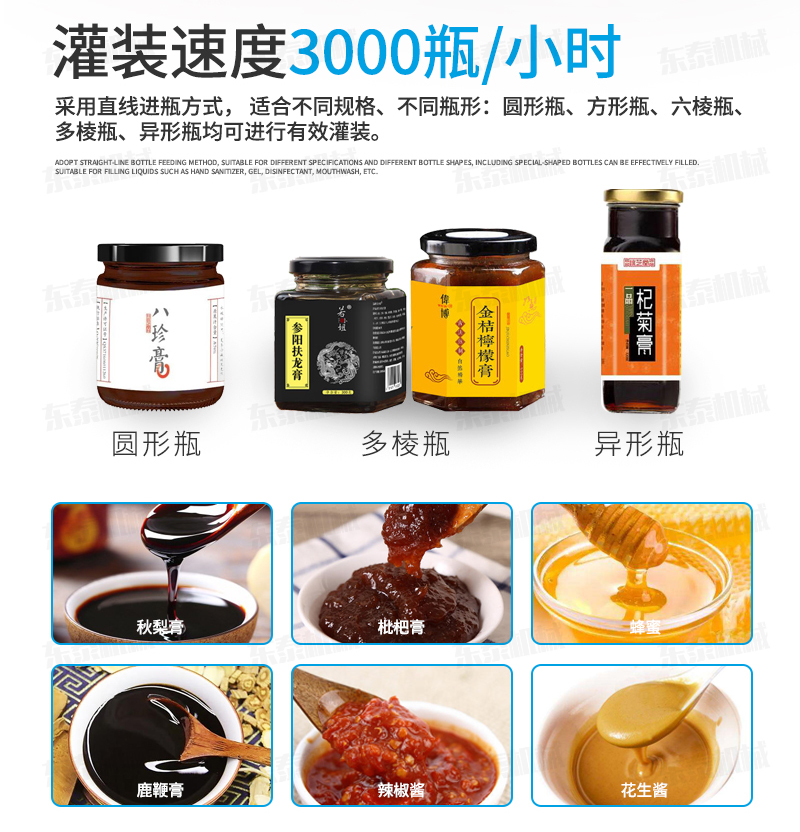 現(xiàn)如今,人們經(jīng)常在再飯后以及平時的生活中喜歡喝點蜂蜜作為養(yǎng)生,好的蜂蜜非常被我們鐘愛,它的口感、質(zhì)感都堪稱上等,有些人覺得土蜂蜜營養(yǎng)價值更高,將其吹捧得神乎其神,還有些人為了讓蜂蜜可以保存較長時間,把它放入冰箱中,而蜂蜜灌裝機(jī)設(shè)備廠家所設(shè)計的自動化蜂蜜灌裝機(jī)就是專業(yè)根據(jù)蜂蜜特性而設(shè)計研發(fā)的,在各個領(lǐng)域的應(yīng)用中都有涉及,現(xiàn)在人們對包裝需求和要求的提高,注定了自動化蜂蜜灌裝機(jī)將將會有著很好的發(fā)展前景,提升了整體行業(yè)的水平,尤其一些創(chuàng)新、技術(shù)開發(fā)等積極性行動,來完成企業(yè)的更好發(fā)展前景。
